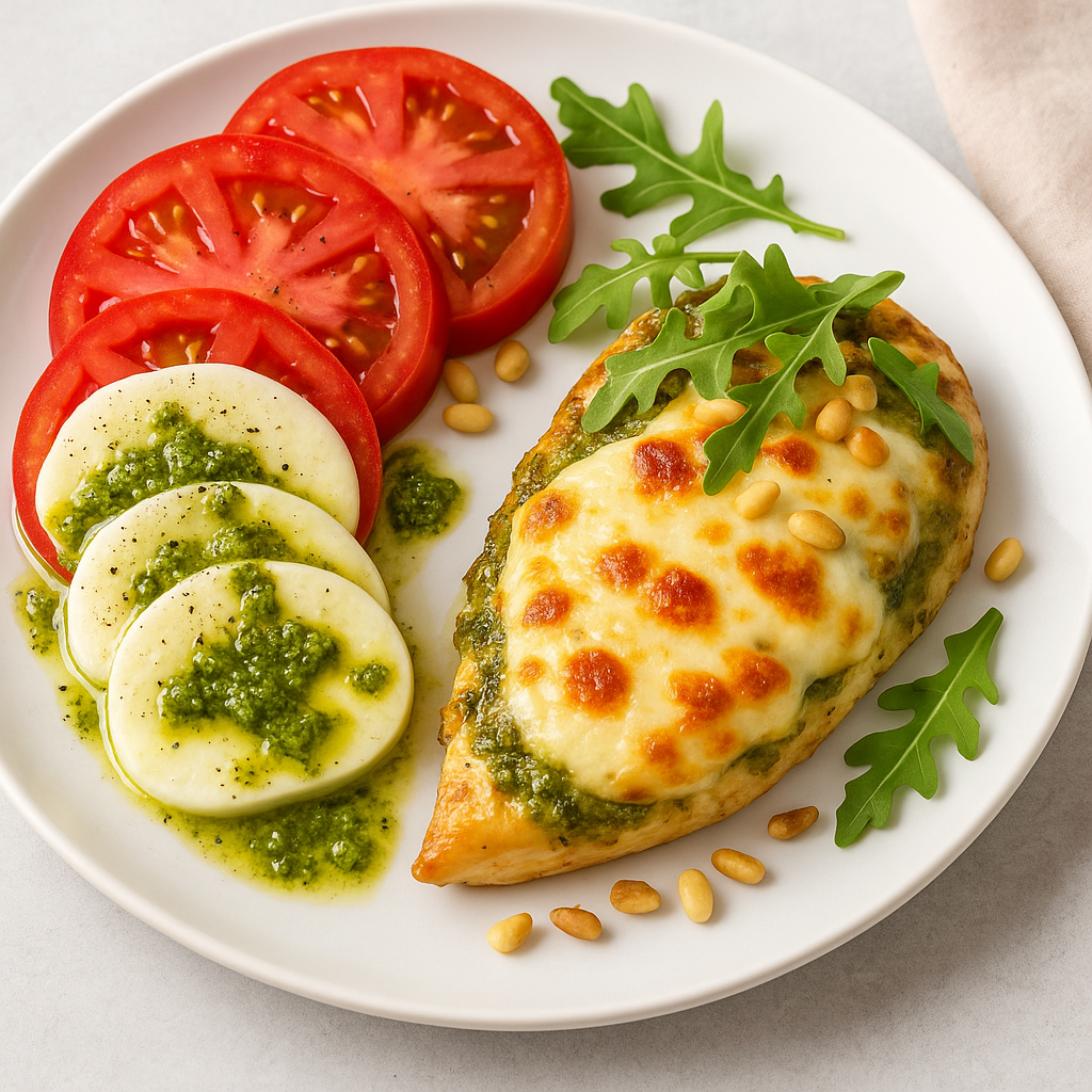 Sometimes the simplest flavor pairings are the most satisfying. This dish combines juicy baked chicken with aromatic pesto and creamy mozzarella, finished off with a fresh caprese salad. It’s the kind of dinner that feels indulgent but is still light and refreshing—perfect for a weeknight meal or even a casual dinner with friends.